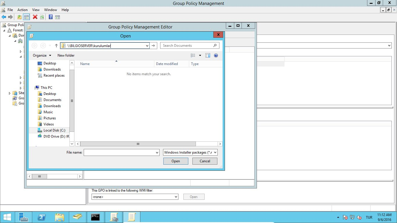 17) Ossec agent kurulumu için oluşturulan GPO da 13, 14, 15 maddelerdeki adımlar aynen izlenir ve paylaşım yapılan klasör içinde ossec-agent kurulumu yapılcak msi dosyası seçilir. İşlemler sırasıyla yapıldığında ekran görüntüsü aşağıdaki gibidir.