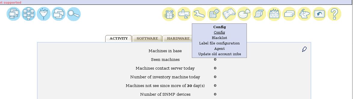 Ossim sekmelerinde Configuration->Administration seçilir.